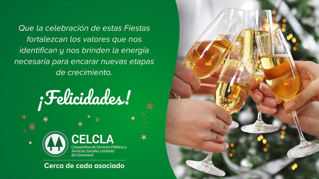 El Consejo de Administración de la Cooperativa de Servicios Públicos y Servicios Sociales Limitada de Claromecó les desea a todos los asociados una Feliz Navidad y próspero Año Nuevo.